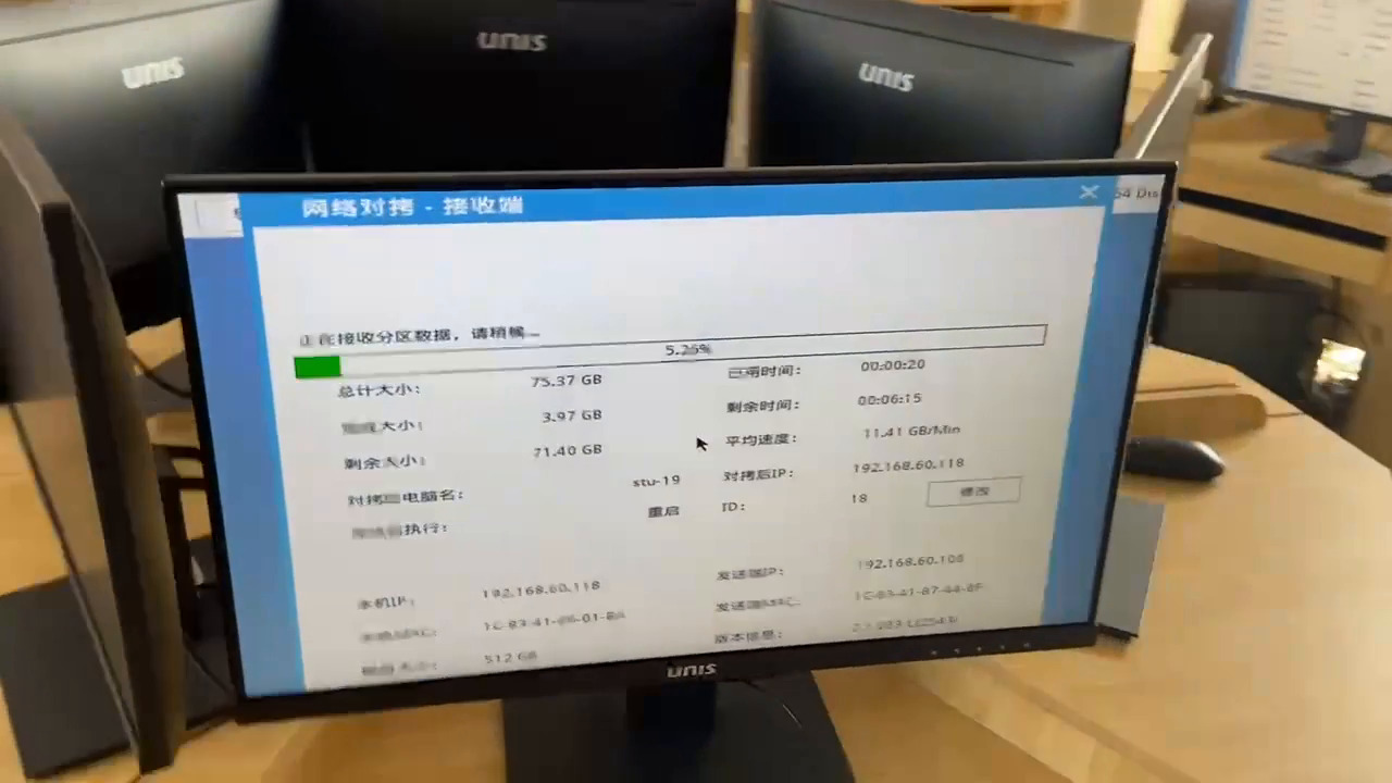 部署新机房或更新软件时,信岩10.0的“网络对拷”功能堪称神器。只需选定一台发送端,其他设备自动同步安装操作系统、驱动、应用软件,速度在8-10GB/Min左右,最快的时候超过11GB/Min。例如,为60台电脑安装系统和全套教学软件,原本需要数天的逐台操作,现在只需十几分钟即可完成。增量对拷功能更是节省资源——仅传输新增数据,大幅减少重复操作。 此外,教师机的远程管理工具让我能随时监看所有终端状态(如IP、还原模式、在线情况),远程开关机、执行命令、修改配置等操作一气呵成。
