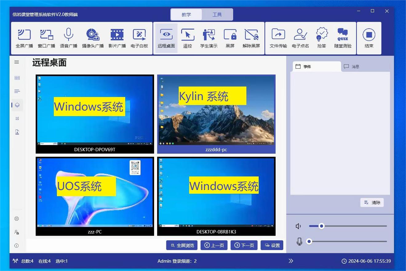 高压低延时广播:支持Windows与信创终端混合环境下的屏幕、视频、白板广播,画面流畅无卡顿