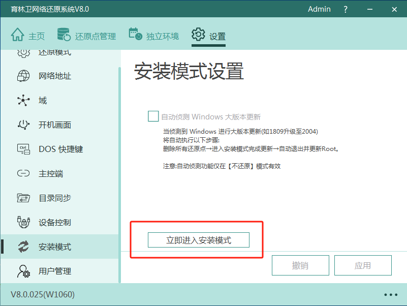 不过在使用安装模式的时候需要注意的是,一旦系统中病毒或者执行其他功能导致系统崩溃,只能重装系统,因为安装模式就相当于开放模式,还原已经不能起到任何作用了,故而非必要,不建议选择使用安装模式进行软件安装。