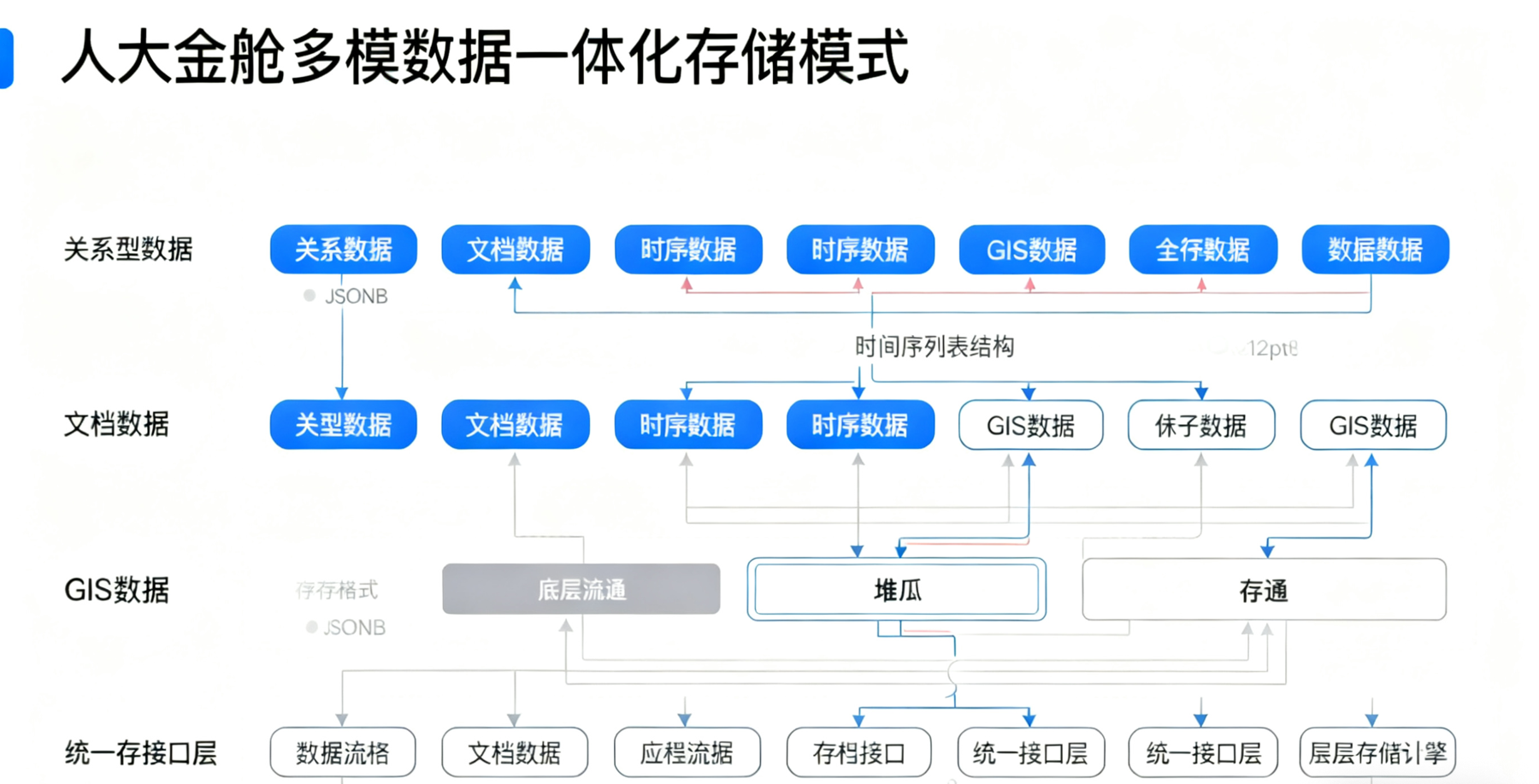 - 核心能力:在同一数据库实例中,统一存储并混合访问 关系型数据(表)、文档数据(JSON/JSONB)、时序数据(时间序列)、GIS 地理数据、全文检索数据,无需部署多个专用数据库(如 MongoDB、InfluxDB)。