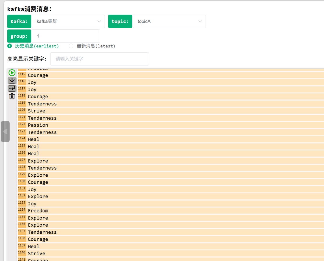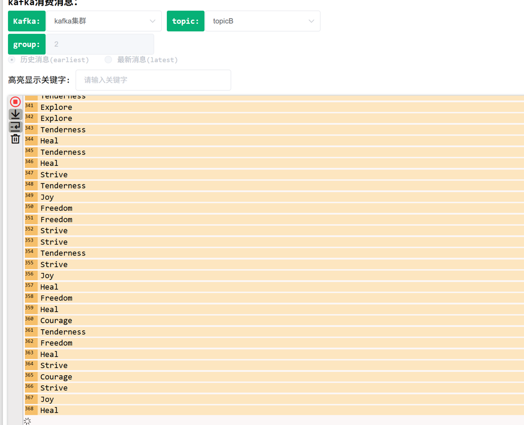 #拦截器处理,topic覆盖问题 agent_log.sources.kafka0.interceptors = i1 agent_log.sources.kafka0.interceptors.i1.type = static agent_log.sources.kafka0.interceptors.i1.key = topic agent_log.sources.kafka0.interceptors.i1.preserveExisting = false agent_log.sources.kafka0.interceptors.i1.value = testsongout