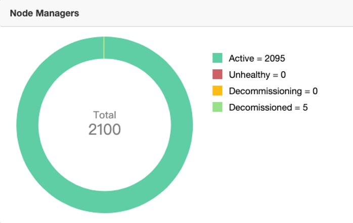 改造后的 DS 任务基本都是提交到 Yarn 上运行, Yarn 集群规模目前是有 2000 多台 node manager 节点,集群总共有 500 多 T内存、10多万 core。