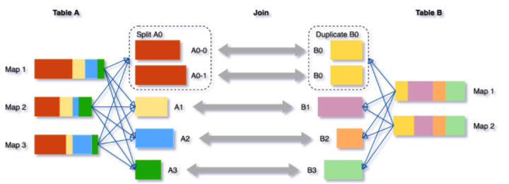 第二点,目前倾斜 Join 优化是根据分区数据量的大小来判断是否存在倾斜的,**扩展倾斜 Join,**可以支持收集分区的行数信息,这样既可以根据分区数据量大小,也可以根据分区的行数来判断一个分区是否倾斜。