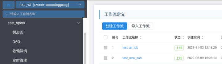 然后在 DAG 编辑页面完成开发、上线、树形图查看、运行、定时管理等一站式操作,尽量让用户在一个页面就能完成工作流的各个操作。