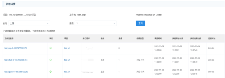 我们还在首页的详情页面,提供了便捷查看上游依赖实例详情的入口,让用户一眼就能看到当前工作流实例的上游是哪个实例没有完成。
