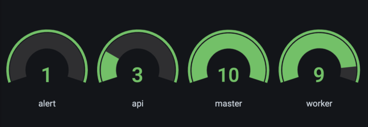 DS 在我们生产环境运行有1年时间了,目前部署的情况是:1台 alert 服务,3台 api 服务,10 台 master 9台 worker,这些服务混合部署在10台物理机上。