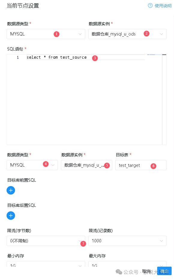 - 可视化配置页面: 在可视化页面配置自定义SQL.来选择源表字段,再也不用编辑 Datax 自带的 JSON 文件了