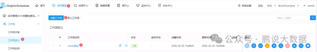 - 在同一台服务器: DolphinScheduler 需要执行 Python 来调用 Datax,无法跨服务器,所以 Datax 需要和 DolphinScheduler 在同一台服务器上