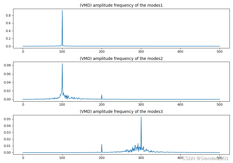 u, u_hat, omega = VMD(f, alpha, tau, K, DC, init, tol) # 输出U是各个IMF分量,u_hat是各IMF的频谱,omega为各IMF的中心频率