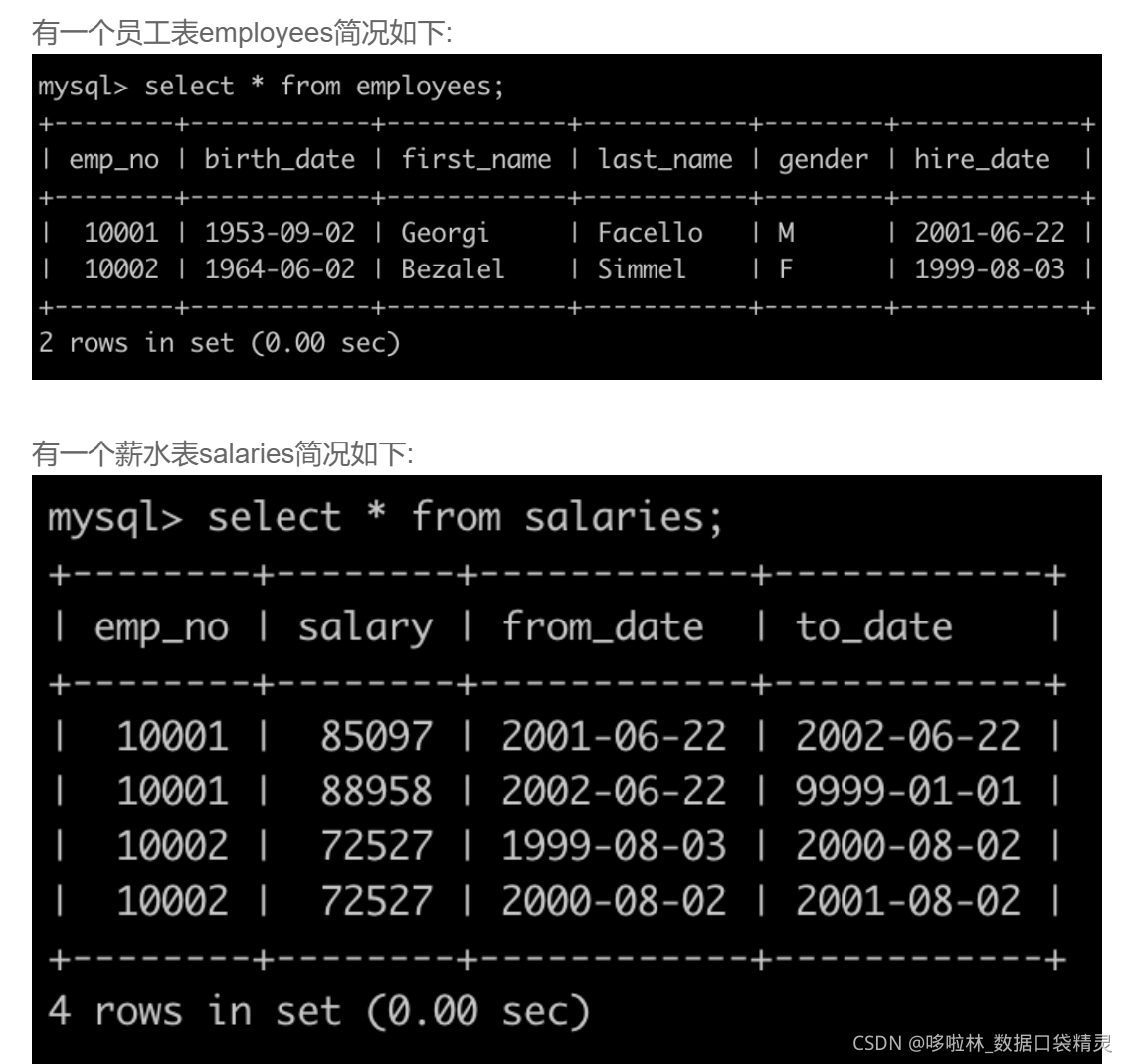 原SQL测试题目为:查找在职员工自入职以来的薪水涨幅情况。