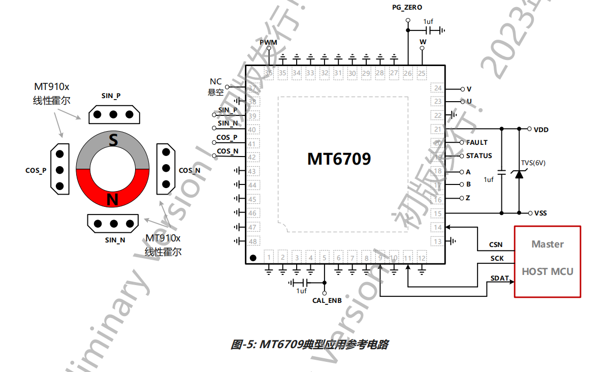 - 离轴应用:在无法对轴安装的特殊机械结构中,MT6709配合适当的磁路设计,能够实现精确的离轴角度检测。