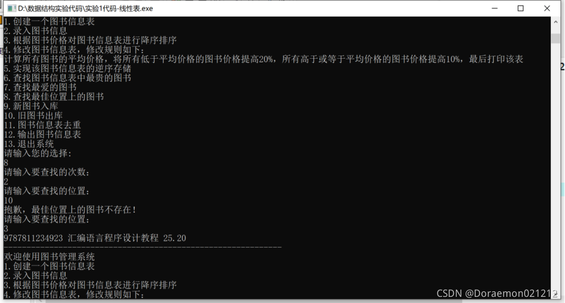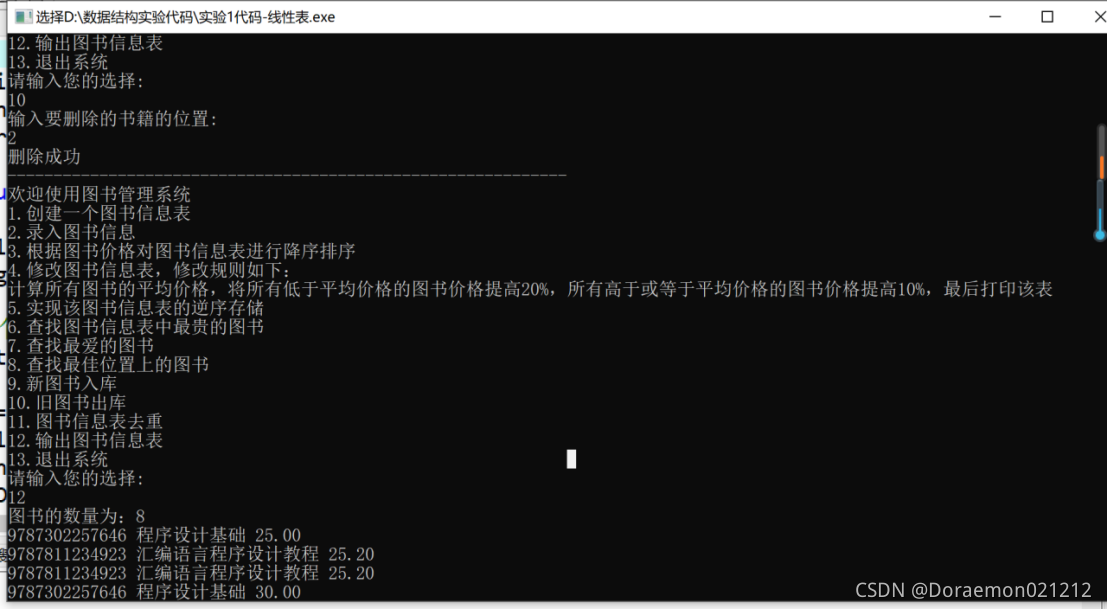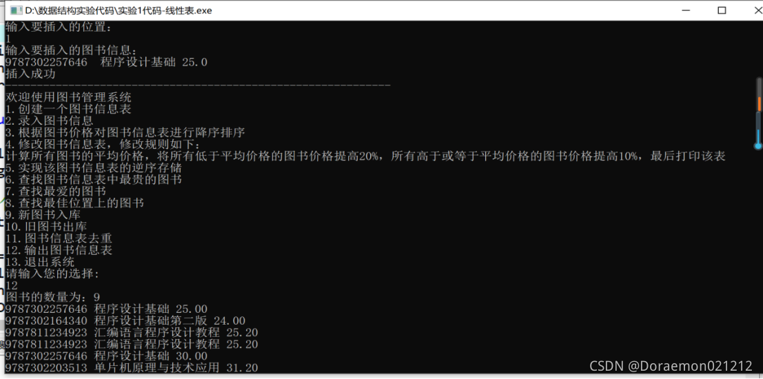 这个博客展示了如何实现一个图书管理系统,包括创建图书信息表、排序、修改价格、逆序存储、查找最贵和最爱图书、定位最佳位置、新书入库、旧书出库、去重等功能。通过示例代码详细解释了每个操作的实现过程。