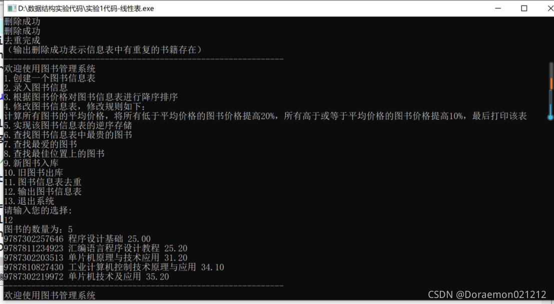 cout<<"(输出删除成功表示信息表中有重复的书籍存在)"<<endl;