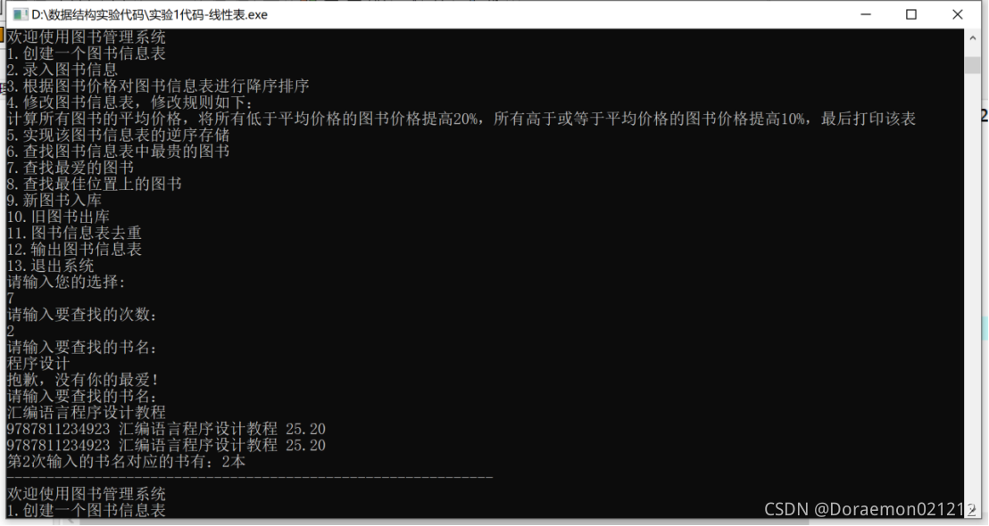 图书信息表包括以下10项常用的基本操作:图书信息表的创建和输出、排序、修改、逆序存储、最贵图书的查找、最爱图书的查找、最佳位置图书的查找、新图书的入库、旧图书的出库、图书去重。