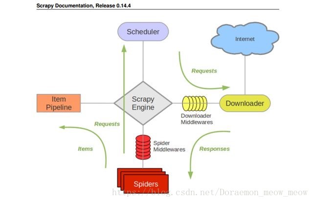 本文主要介绍Scrapy的数据流程和各部分的作用与输入输出。Scrapy初始内容在spiders中,通过start_urls或start_request()获取初始URL,spiders将URL传递给scheduler,scheduler再将URL给downloader下载页面,downloader返回response给spiders,spiders解析生成items,items传递到item pipeline处理。