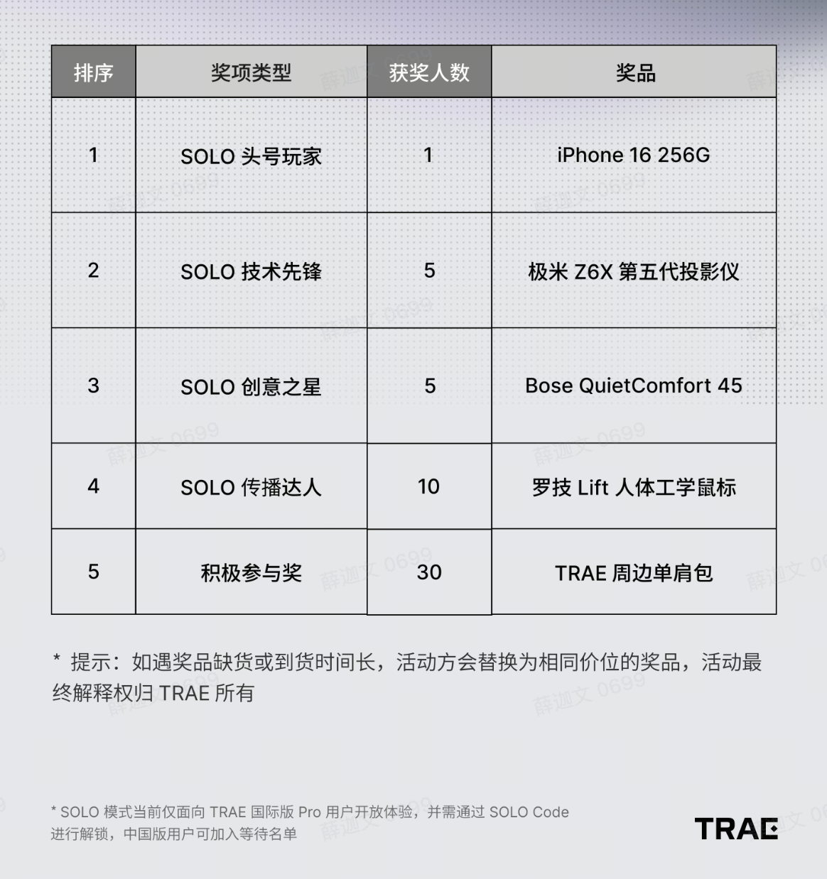 获奖名单将在 TRAE 官号公布