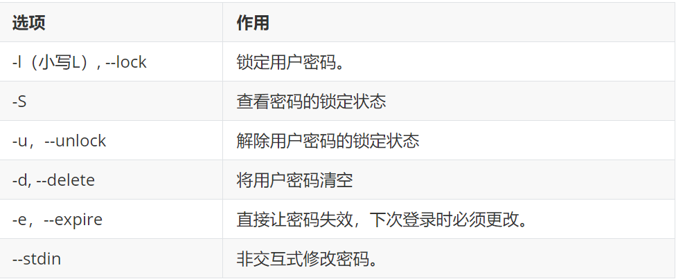 更改用户的密码。root用户使用时,可以更改所有用户的密码。普通用户使用时,只能更改本身的密码。