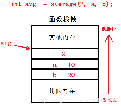 int avg1 = average(2, a, b); 该语句调用average() 函数时,其参数列表中有三个参数,而且是从右向左依次压栈的。