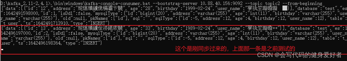 .\bin\windows\kafka-console-consumer.bat --bootstrap-server 10.88.40.156:9092 --topic topic2 --from-beginning