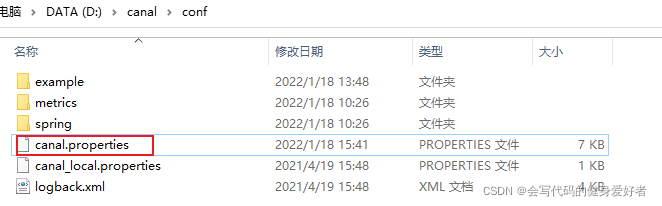 1.打开D:\canal\conf\example 下面的instance.properties文件