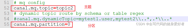 2.2 在config目录下有个example文件,点击后会看见instance.properties文件,打开配置一下kafka的主题,以下操作都是在instance.properties文件里面