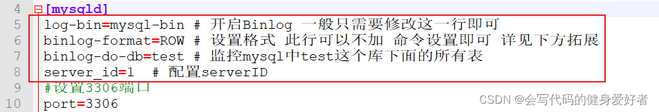 binlog-do-db=test # 监控mysql中test这个库下面的所有表