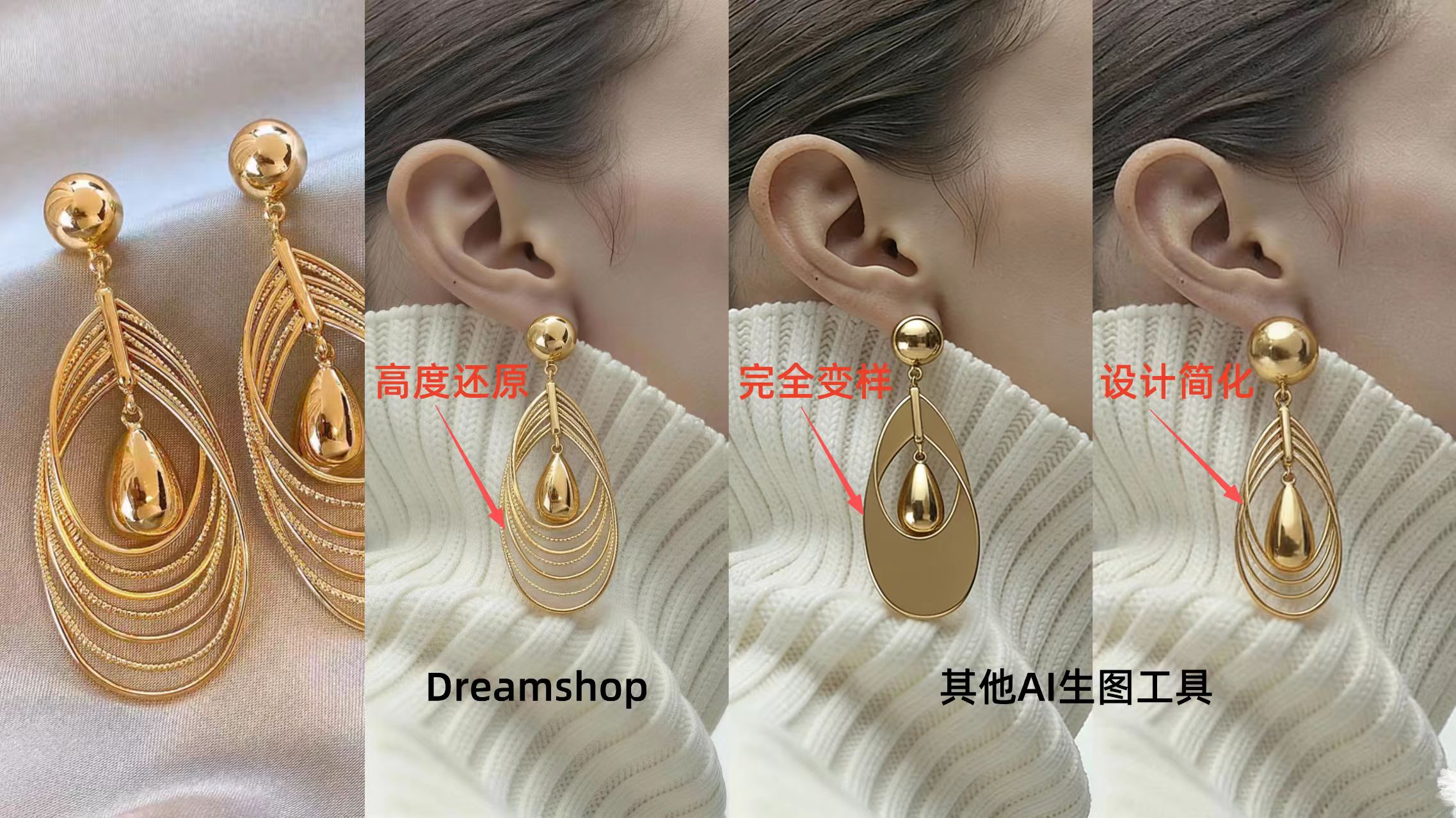 一位珠宝卖家在体验后表示:“最让我惊讶的是细节处理能力。过去我们最头疼的就是如何通过图片展现金属工艺的精细程度,现在 AI 生成的图片中,连最小的镂空细节都清晰可见。”