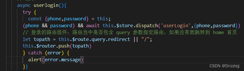 路由当中是否包含 query 指定路由:当用户在还未登录的情况下,访问我的订单页面,会立即跳转到登录页面,用户登录成功以后则会 跳转到 我的订单页面。