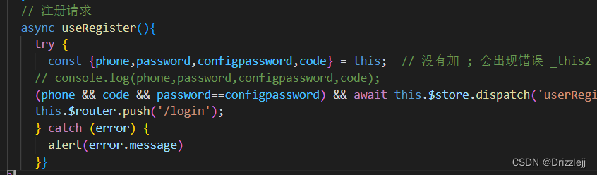 将表单内容和验证码提交给服务器发起注册请求,注册成功后跳转到登录页面