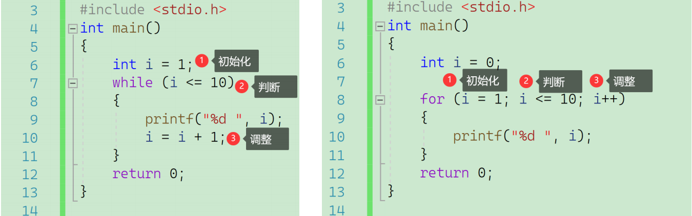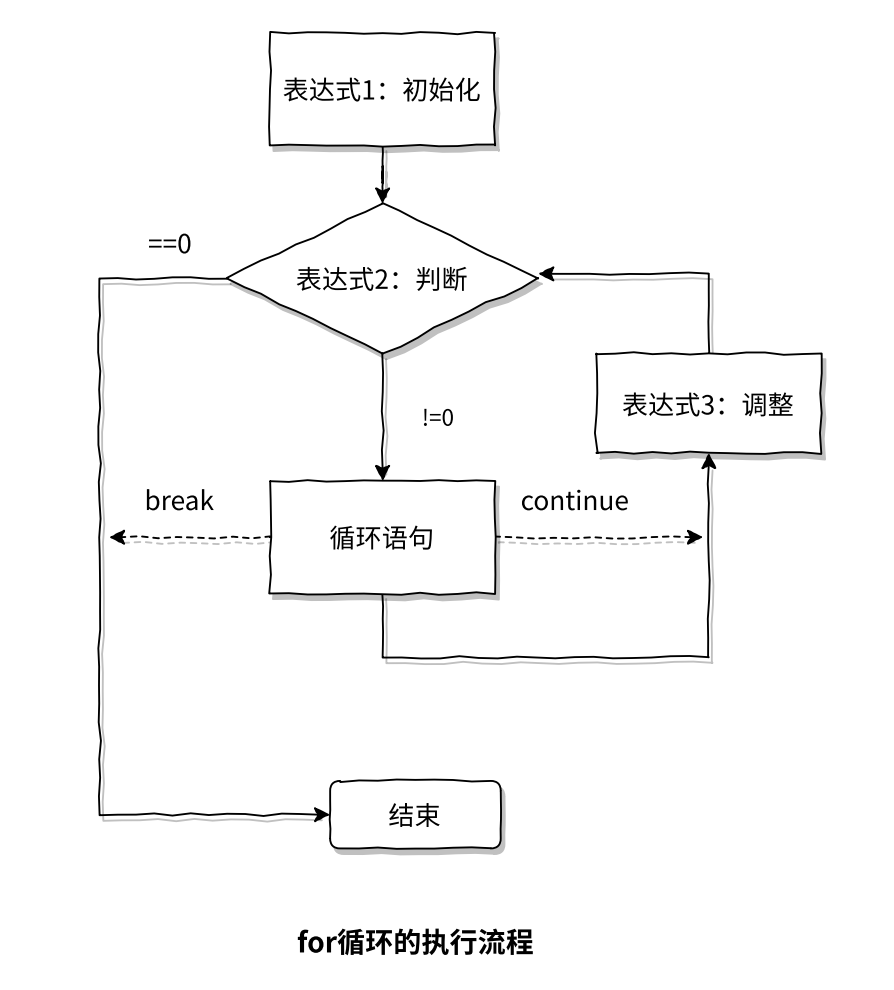 其中,语句1用于变量的初始化,语句2用于判断是否退出循环,语句3用于变量的调整。
