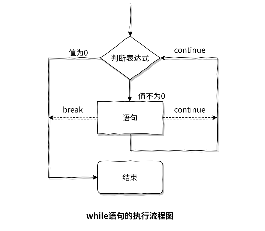 首先上来先执行表达式,如果表达式的结果为0,则循环直接结束;如果表达式的结果不为0,则执行循环语句,执行循环语句后再判断,是否进行下一次循环。