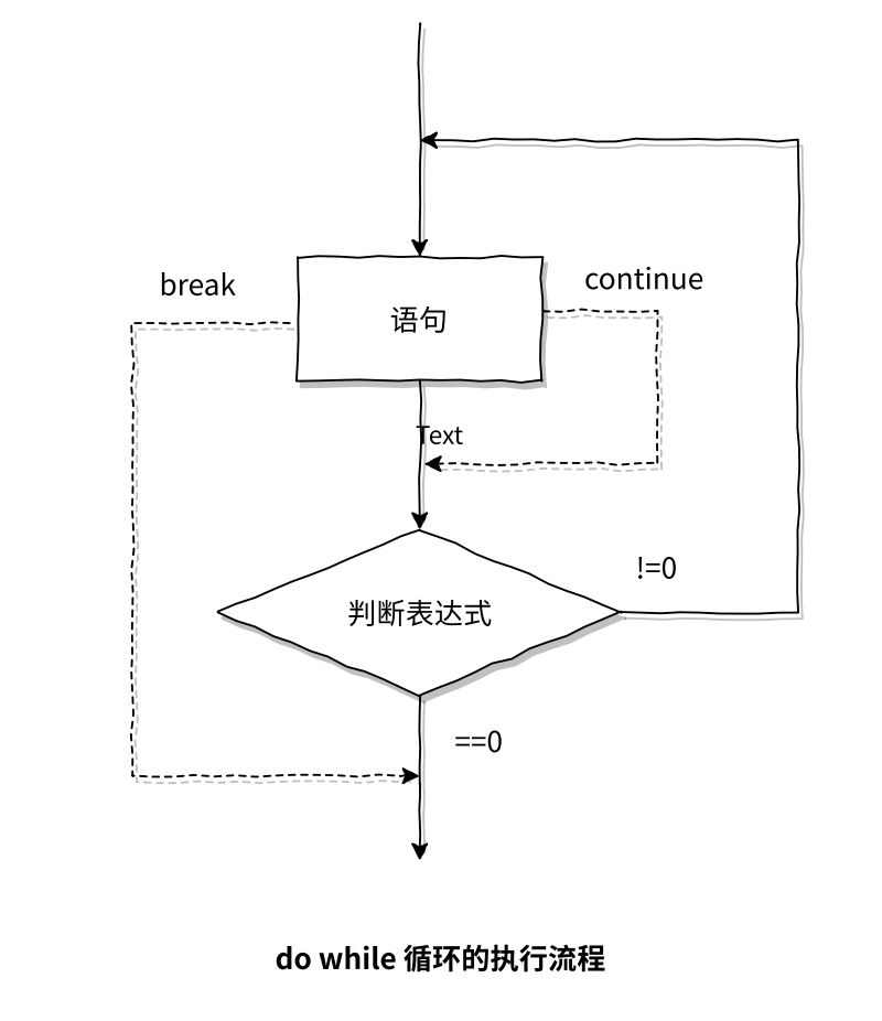上来先执行语句,再判断表达式,如果表达式为真,则继续执行语句,如果表达式为假,则退出循环,以此类推。