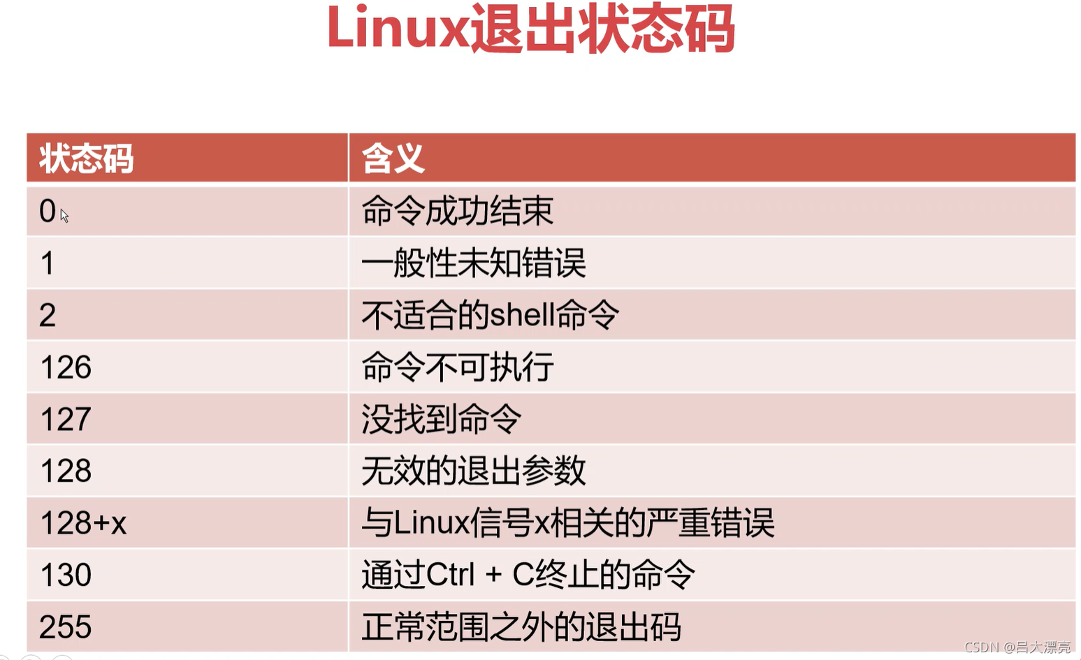 命令echo $?可以查看最近进程(正常退出)的退出码。