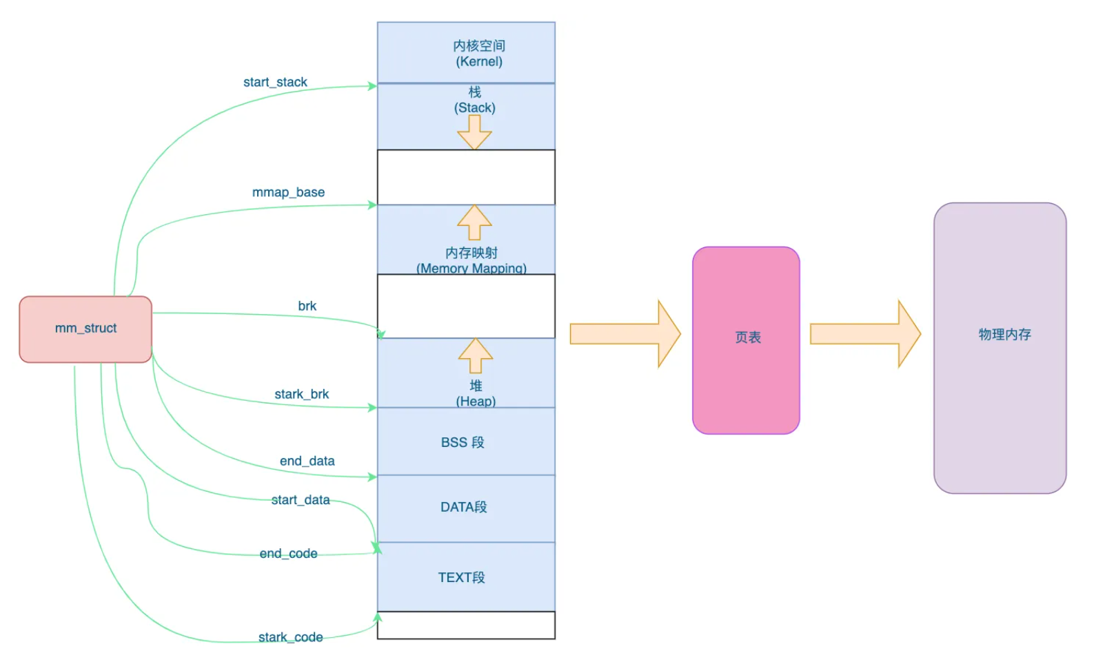 在进程task_struct中,有一个mm_struct的结构体,被称为内存描述符,用于描述进程的虚拟内存,但是这样就可以做到相互之间互不干扰。