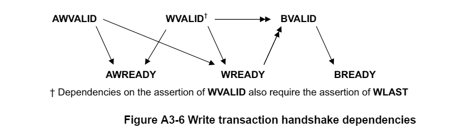- 在置高 BVALID 之前,Slave 必须等待 WVALID 和 WREADY 都被置高