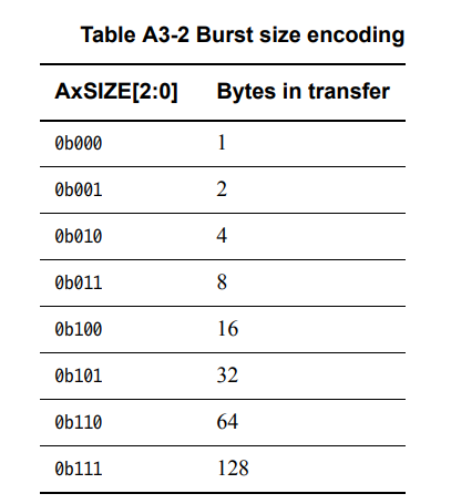 指传输中的数据位宽,具体地,是每周期传输数据的字节数量,在协议中使用 AXSIZE 信号控制。突发传输数据宽度不能超过数据总线本身的位宽。而当数据总线位宽大于突发传输宽度时,将根据协议的相关规定,将数据在部分数据线上传输。