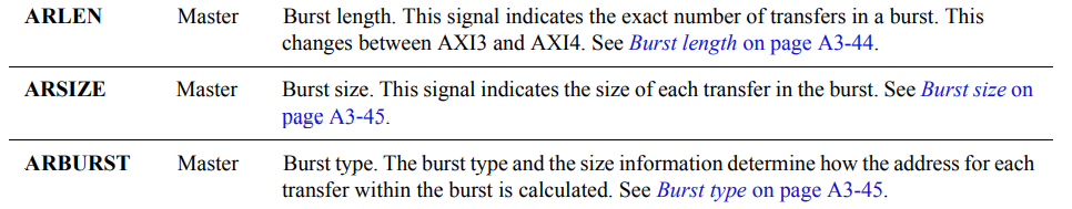 - AXI Beats:a burst can comprise multiple data transfers, or AXI Beats.表示 AXI burst 的组成,一个 Beat 就是一个 transfer。