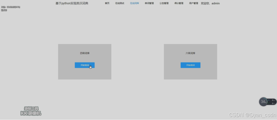 (2)词库的管理,管理员能够通过词库的管理来实现四级、六级单词的词库分类操作,前端用户也能够通过进入词库后选择四级、六级的两个不同的词库进行使用。