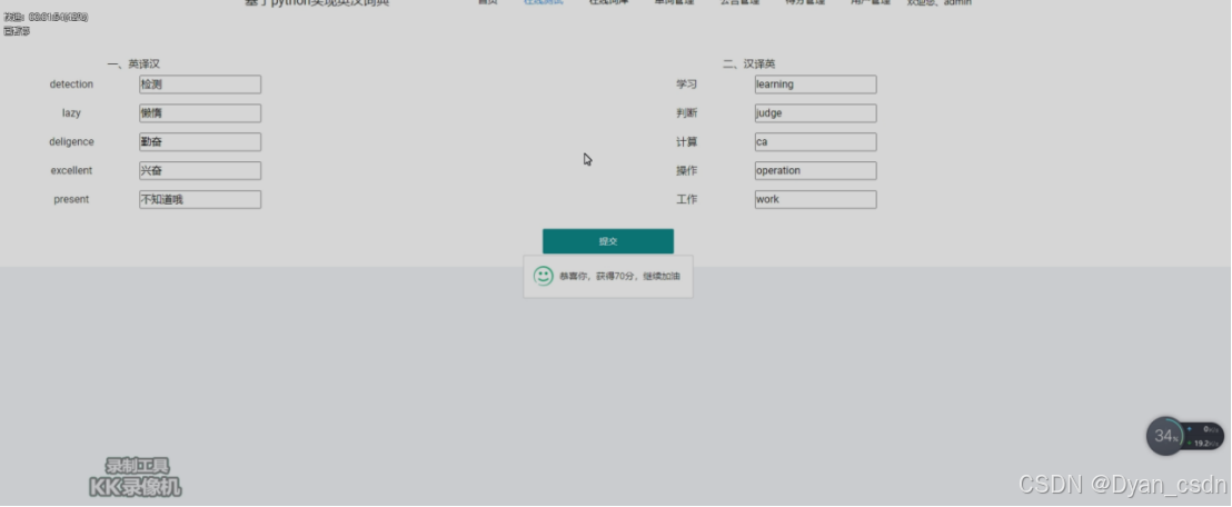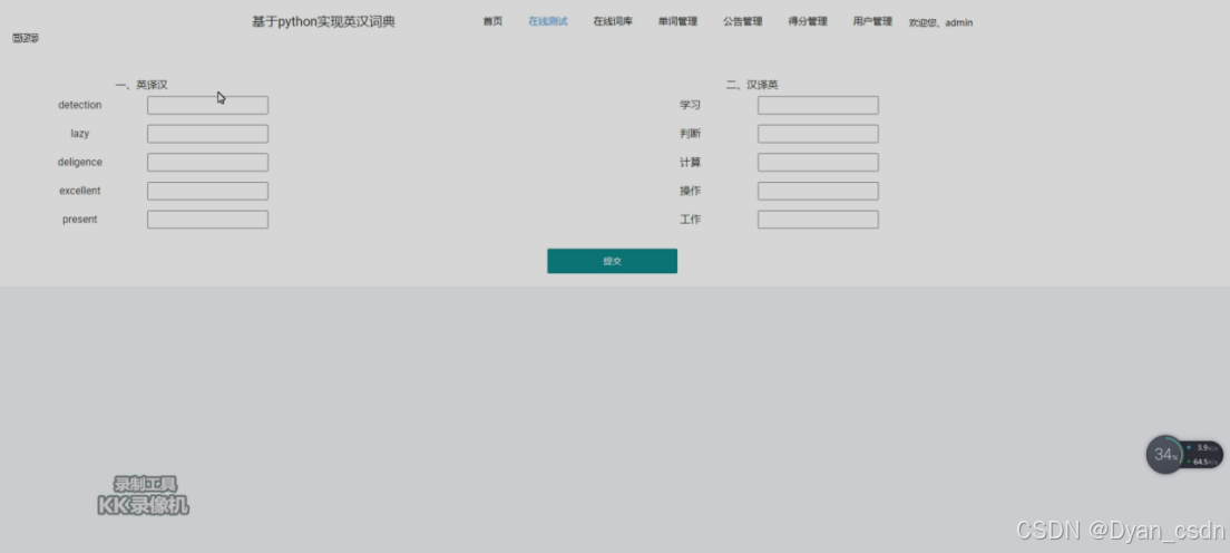 (5)在线考试管理,管理员能够进行考卷出题的操作,通过设立“英翻汉”、“汉翻英”的考题来让用户加深对于单词的影响,实现更好的单词记忆。