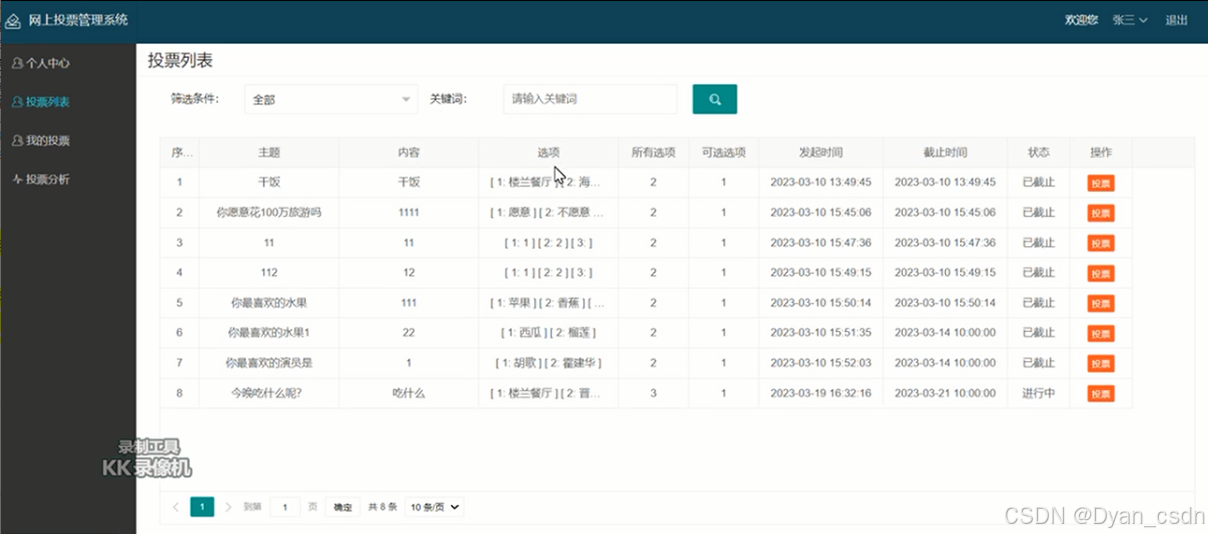 管理员:(1)该系统需要向管理员提供投票发布、修改、删除等相关操作功能,管理员可自由地设置投票内容、选项、时间和规则等,以供学生自由参加投票;(2)管理员可在系统中查看投票分析结果,系统应该支持及时、准确地统计和分析投票数据,并提供数据可视化功能,方便管理员在第一时间检查投票结果。