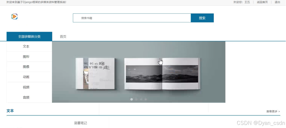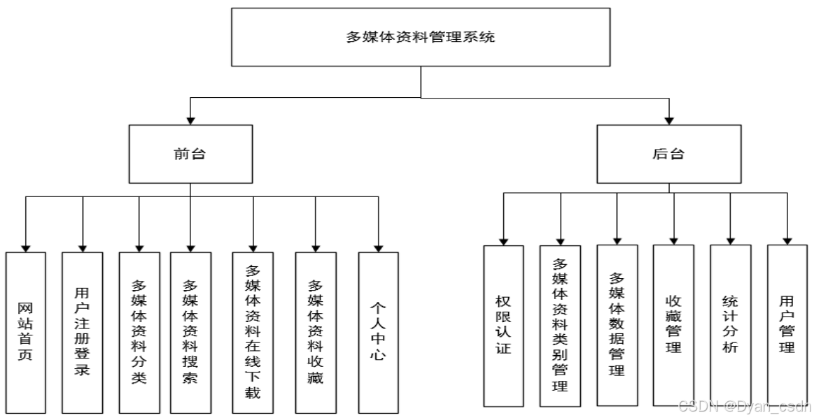 系统简介:系统在界面呈现上分为了前端用户以及后台管理员,前端用户的主要需求集中在通过系统平台实现多媒体资料信息的查询、收藏及下载,结合关键信息的录入实现在线多媒体资料信息的查询,同时可以通过多媒体资料的类别进行分类内容查看。对于需要的多媒体资料可以进行在线的资料收藏及下载,从而满足前端用户资料查询和获取的需求。对于后台的管理人员,可以借助系统后台实现多媒体资料类别及数据文件内容的上传,同时可以对前端用户的资料收藏信息进行管理和查询,结合统计分析模块对系统平台的收藏及下载数据进行统计。