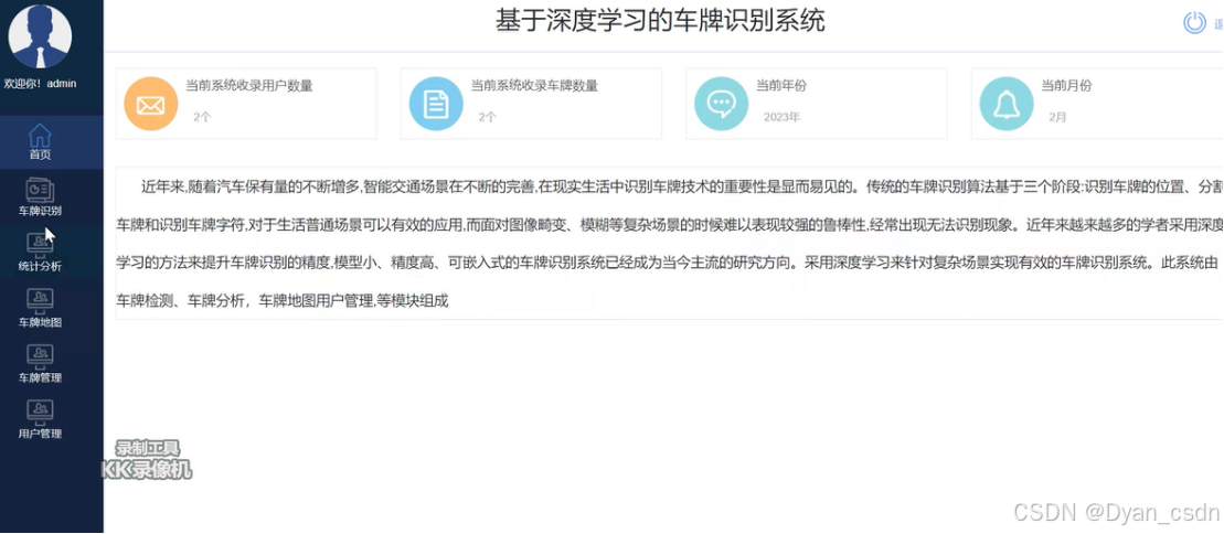 系统简介:包括车牌识别、统计分析、车牌地图、车牌管理和用户管理功能