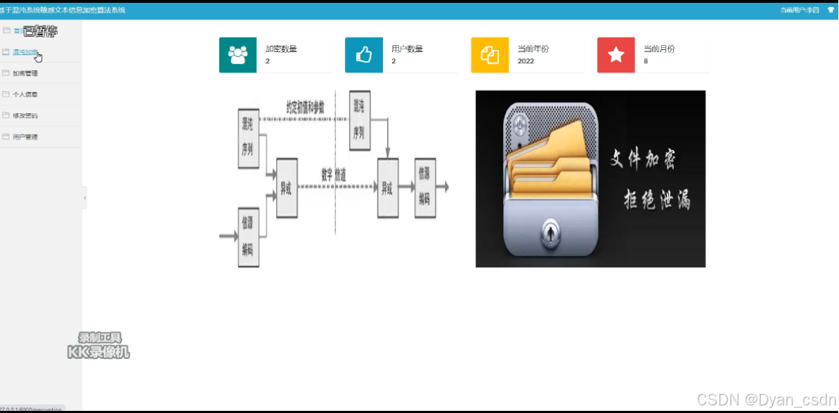 系统简介:通过利用自然语言中的混沌技术来实现对上传的文本中的敏感信息进行有效的加密功能的实现;其次是在解密上的设计,通过对应的秘钥,需要针对已经加密的敏感文本信息进行一次合理有效的解密功能。