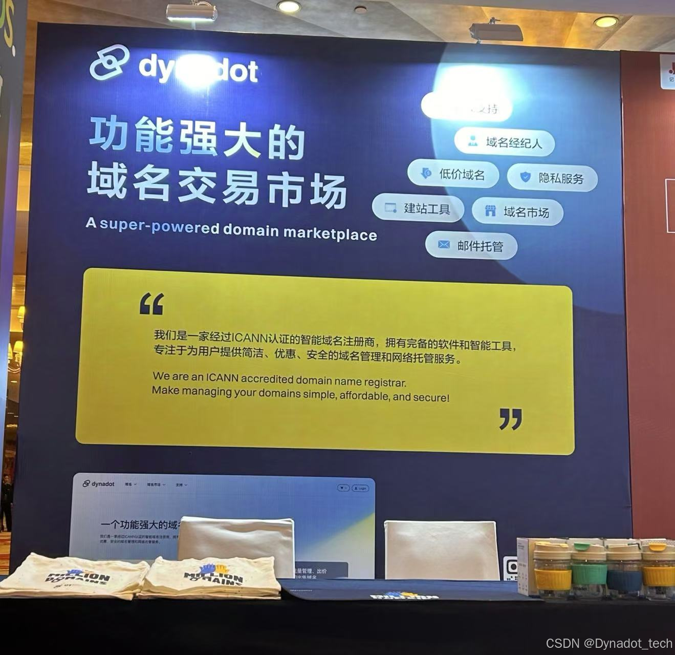 作为本次峰会的重要合作伙伴,Dynadot在会场设置了专属展台,并为新老客户准备了精美周边。展台吸引了众多与会者的驻足,大家对我们的产品和服务表现出浓厚的兴趣。Dynadot团队也在现场积极与与会者进行了深入的交流和互动。