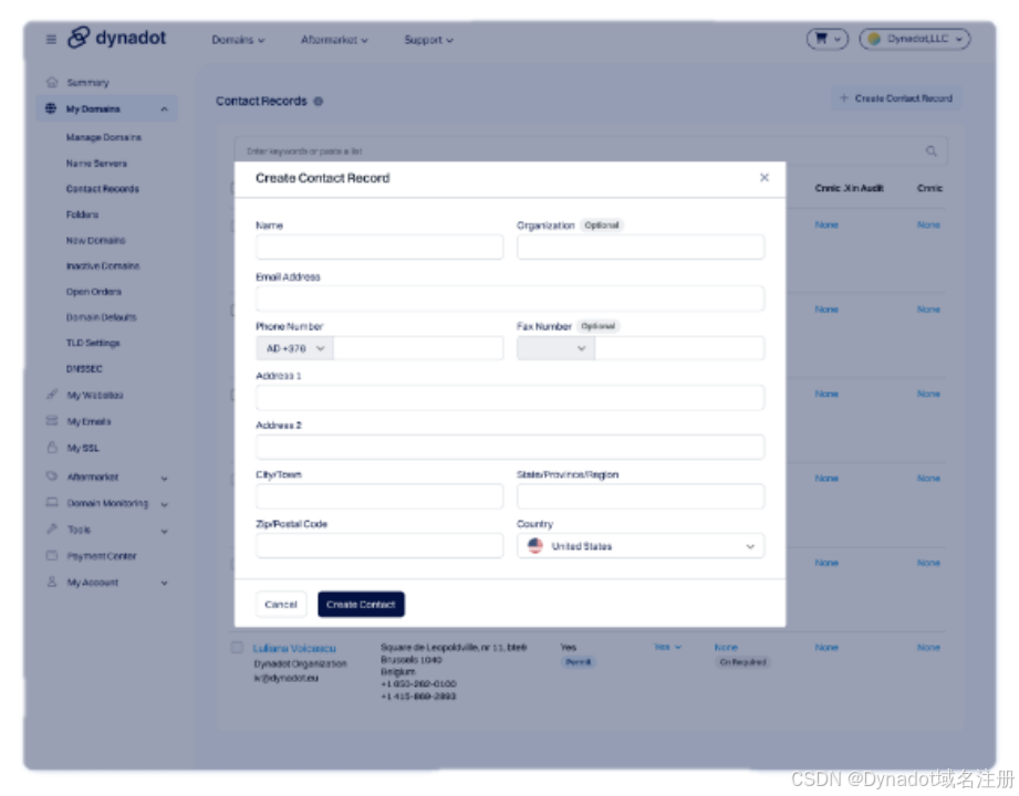 我们支持直接通过控制面板创建和管理已保存的联系人记录和域名服务器,可以轻松地应用到投资者的域名。