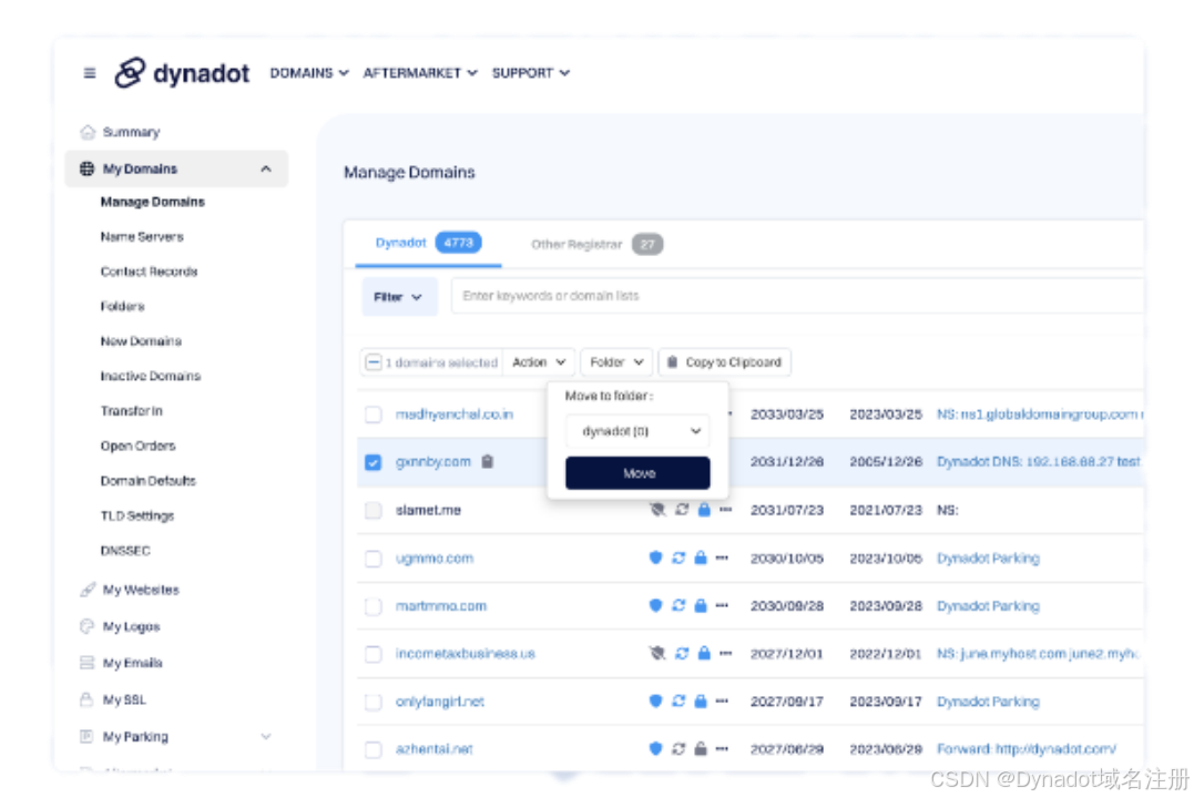 不论您是出于什么样的需求选择注册或是购买一个域名,选择使用配套的工具有利于更快达成自己的目标。在这里,我们将以dynadot为例,主要介绍域名后台,管理控制面板中的一些域名管理设置。