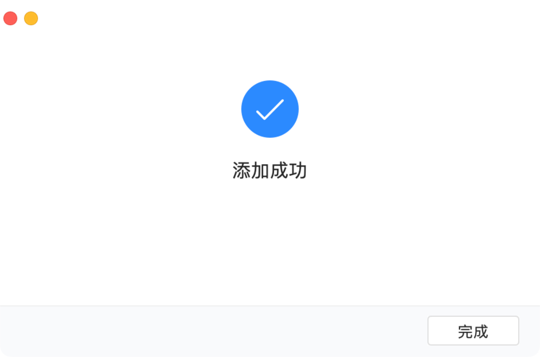 待验证结束,邮箱显示为添加成功后,点击完成按钮,即可通过Foxmail登陆域名邮箱。