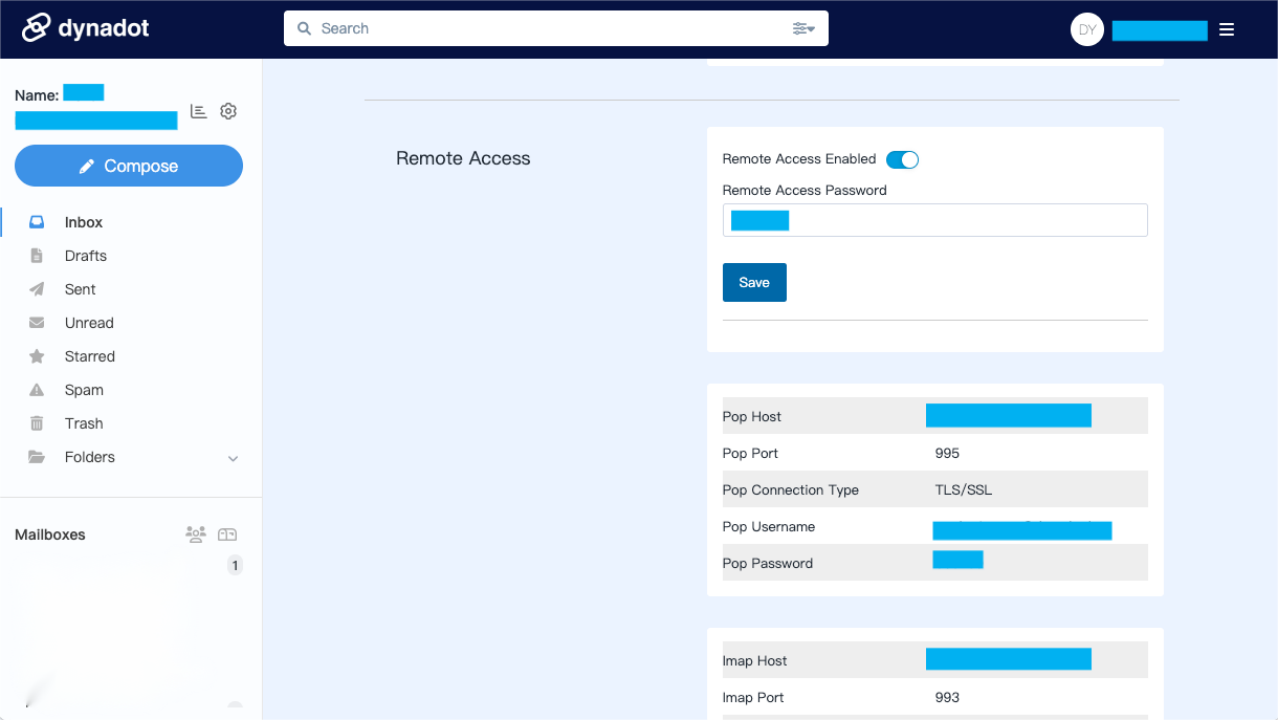 进入设置界面后,下拉至远程链接菜单部分,在这里,用户可以自行修改IMAP或POP密码。