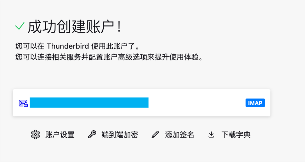 点击完成,随后即跳转至成功创建账户页面,您就可以自由使用邮箱了。