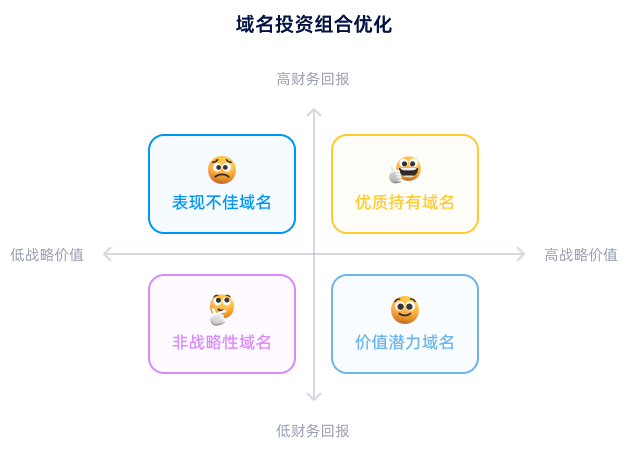 在企业进行域名管理的同时,您需要不断评估这一组合的合理性,并斟酌是否要增添或剔除一些域名。这对于保持其价值并使其与业务目标保持一致非常重要。具体方法如下: